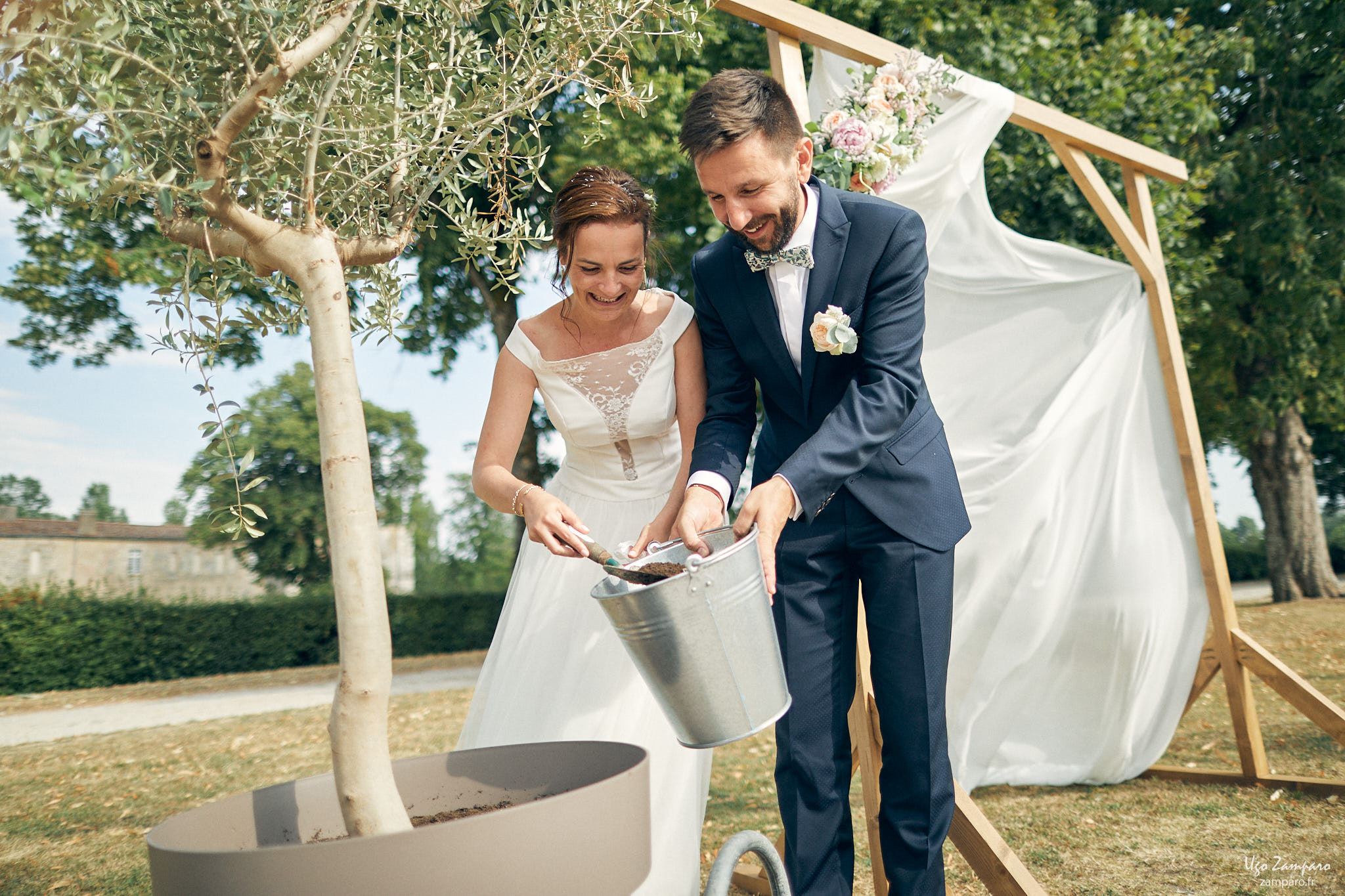 Ce rituel était particulièrement important pour leur couple car en plus de la symbolique de l’arbre avec ses racines plantées dans la terre et ses branches tendues vers le ciel, Florie et Frédéric ont également choisi un type d’arbre bien particulier : L’olivier . Cet arbre est mythique car dès la Grèce antique, il est le symbole de la force, la victoire, la sagesse, la fidélité, l’immortalité, la richesse et l’espérance.